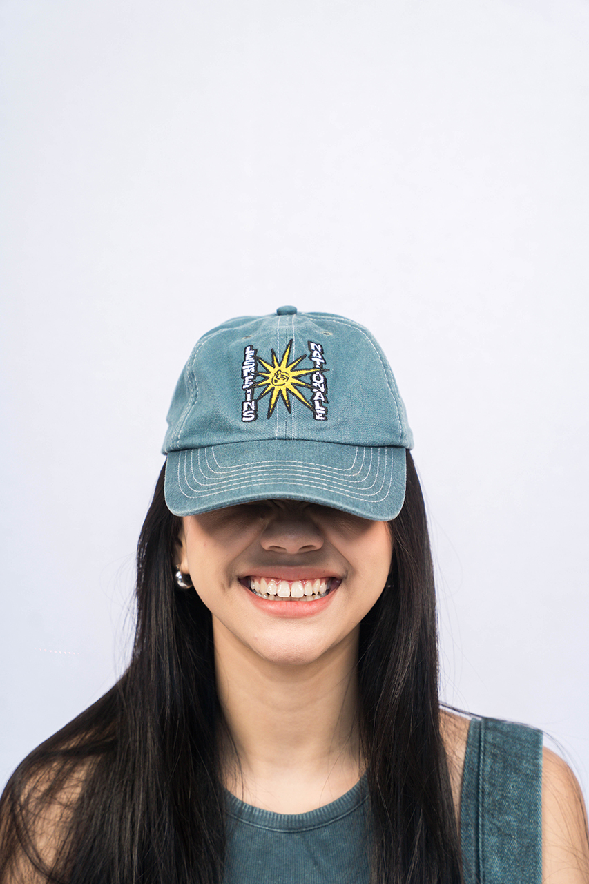 Green bottle wash 6 panel hat made of cotton twill fabric with an embroidered motif on the front, embroidered eyelets on top and adjustable strap ensures a snug and comfortable fit, while the bendable visor adds a touch of versatility to your ensemble.
