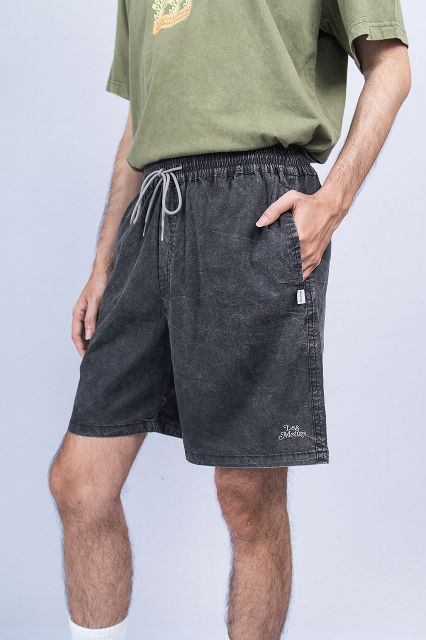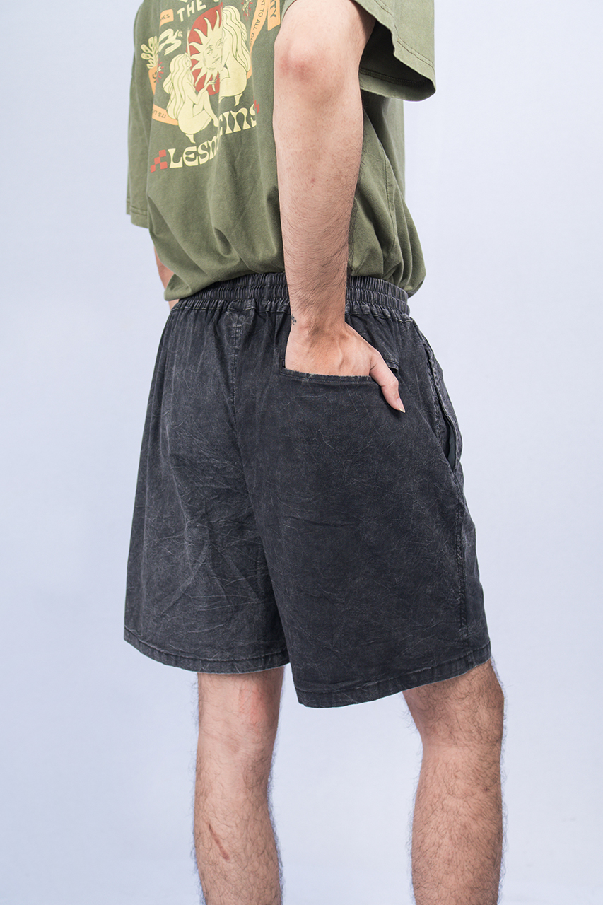 The mid-weight soft stone-washed poplin with stretch is extra breathable and cooling. The elastic waistband with a drawstrings ensures a perfect fit for nearly every summer occasion. Features side pockets and one back pocket.