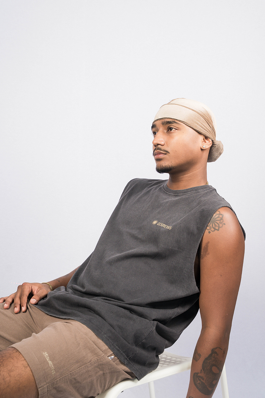 Male model height: 180cm / 5'9"ft, wears size XL top, size L bottom.