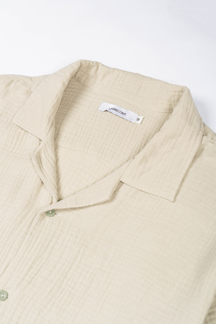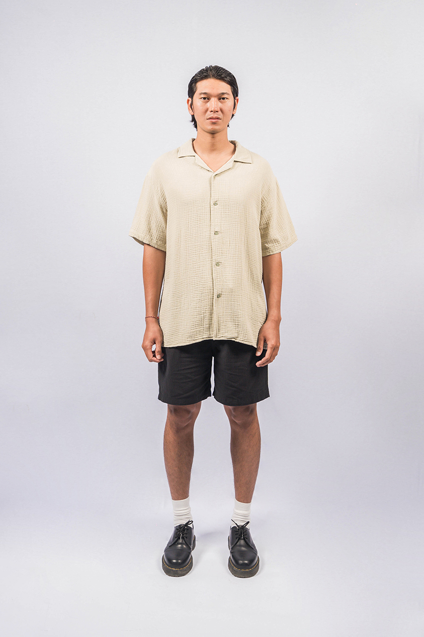 The POLIM Khaki is made with bubble crepe-texture cotton, giving it a lightweight and breathable feel. Designed with an open collar and relaxed fit cut, it offers easy movement and all-day comfort. A versatile piece you can style for casual outings or chill everyday looks!